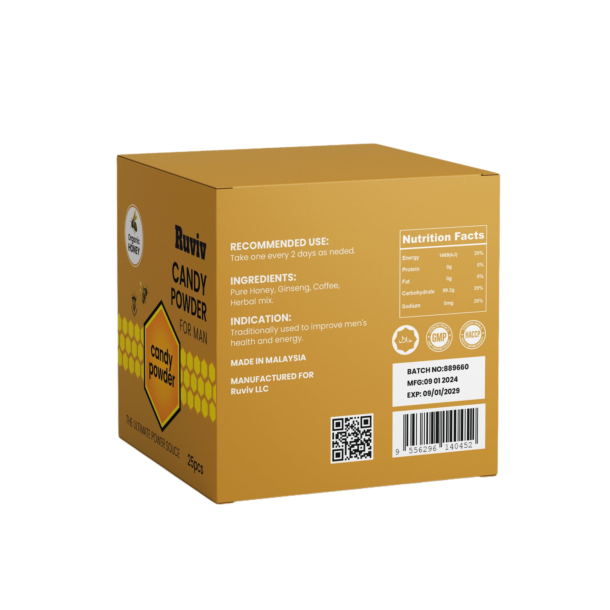 Pure Honey Candy with Coffee, Ginseng & Natural Herbs For Him, Full Box of 25pc
